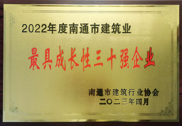 2022年度南通市建筑業(yè)最具成長性三十強(qiáng)企業(yè)