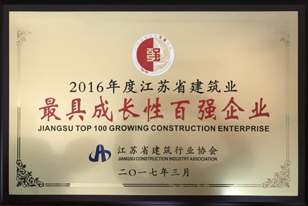2016 年度江蘇省建筑業(yè)最具成長(zhǎng)性百?gòu)?qiáng)企業(yè)